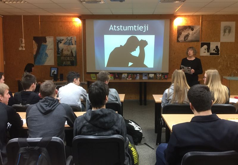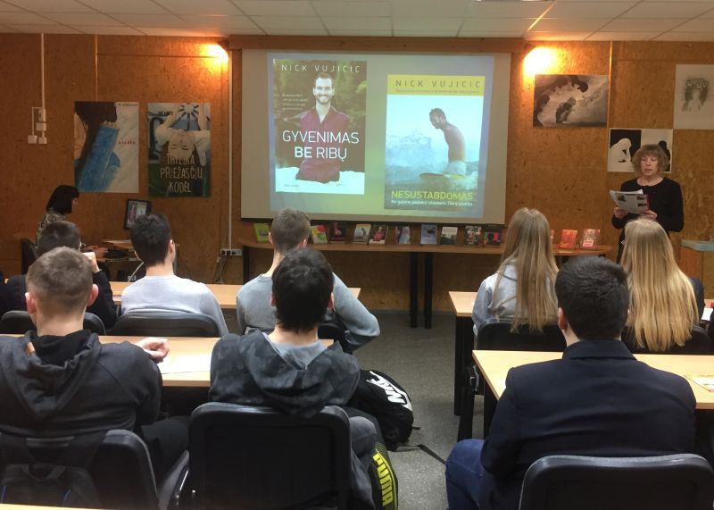 Kovo mėnesį drauge su etikos ir tikybos mokytojomis bei bendraklasiais lankėmės gimnazijos bibliotekos darbuotojų paruoštame knygų pristatyme, kuris buvo skirtas savaitei „Be patyčių“.